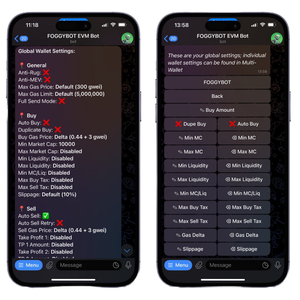 Gas Delta functions as the max priority fee (gwei) for ETH/BNB transactions. The bot automatically adjusts to the current gas average and adds the specified Gas Delta on top. For example, if the gas average is 10 gwei and you set a Gas Delta of 5 gwei, your transaction’s gas price will be 10 (base) + 5 (priority) gwei.