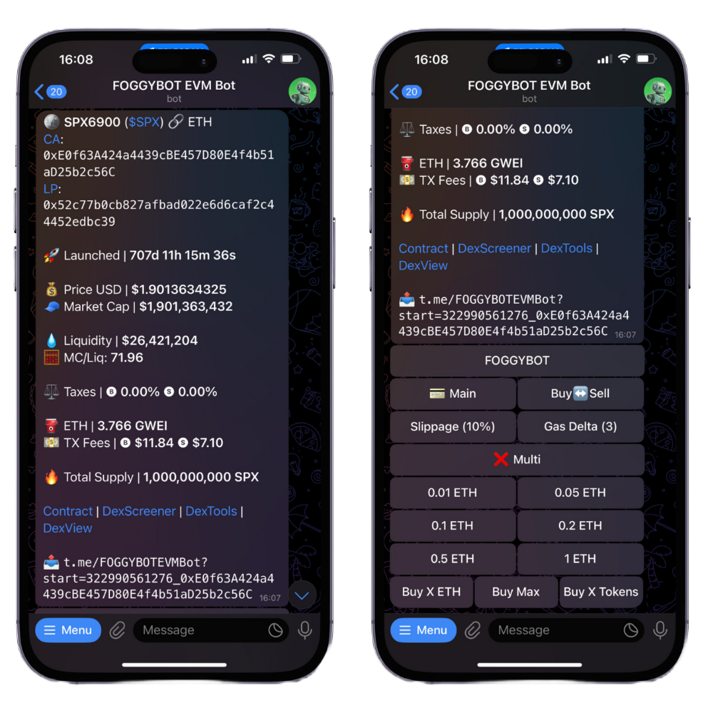 You can use the buy buttons to quickly buy a specific amount of ETH/BNB/SOL/USDC/USDT worth of the token you pasted. These buttons can be personalised in your main wallet settings, so you can size your trades however you please.