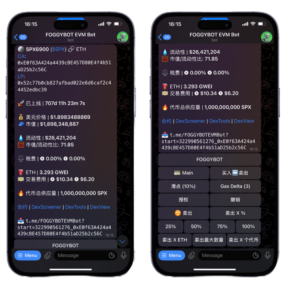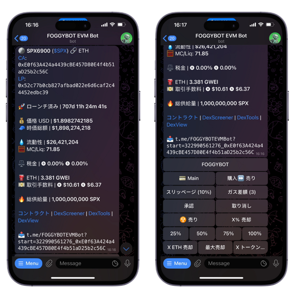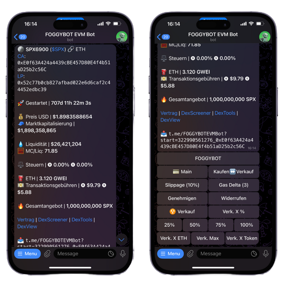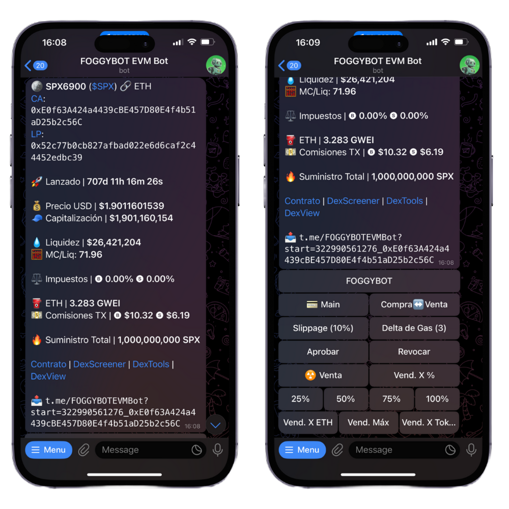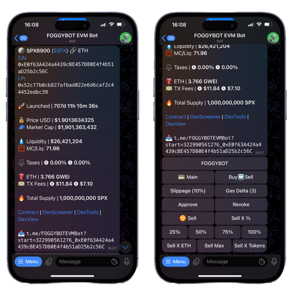 This button enables you to toggle through your wallets and pick the one you want to sell with. If your selected wallet has that specific token in it (even if not bought with FOGGYBOT), you can sell it by clicking the buttons below.