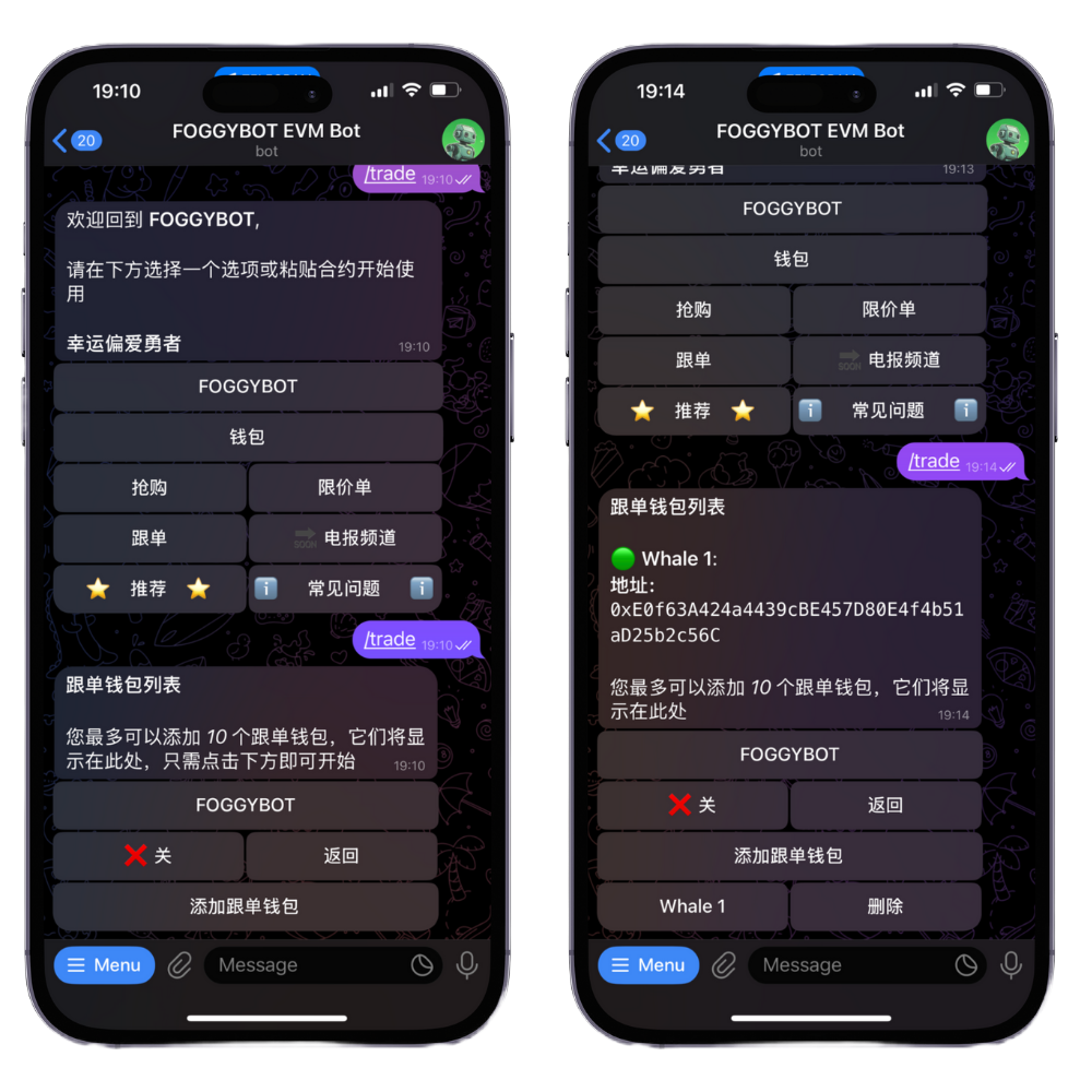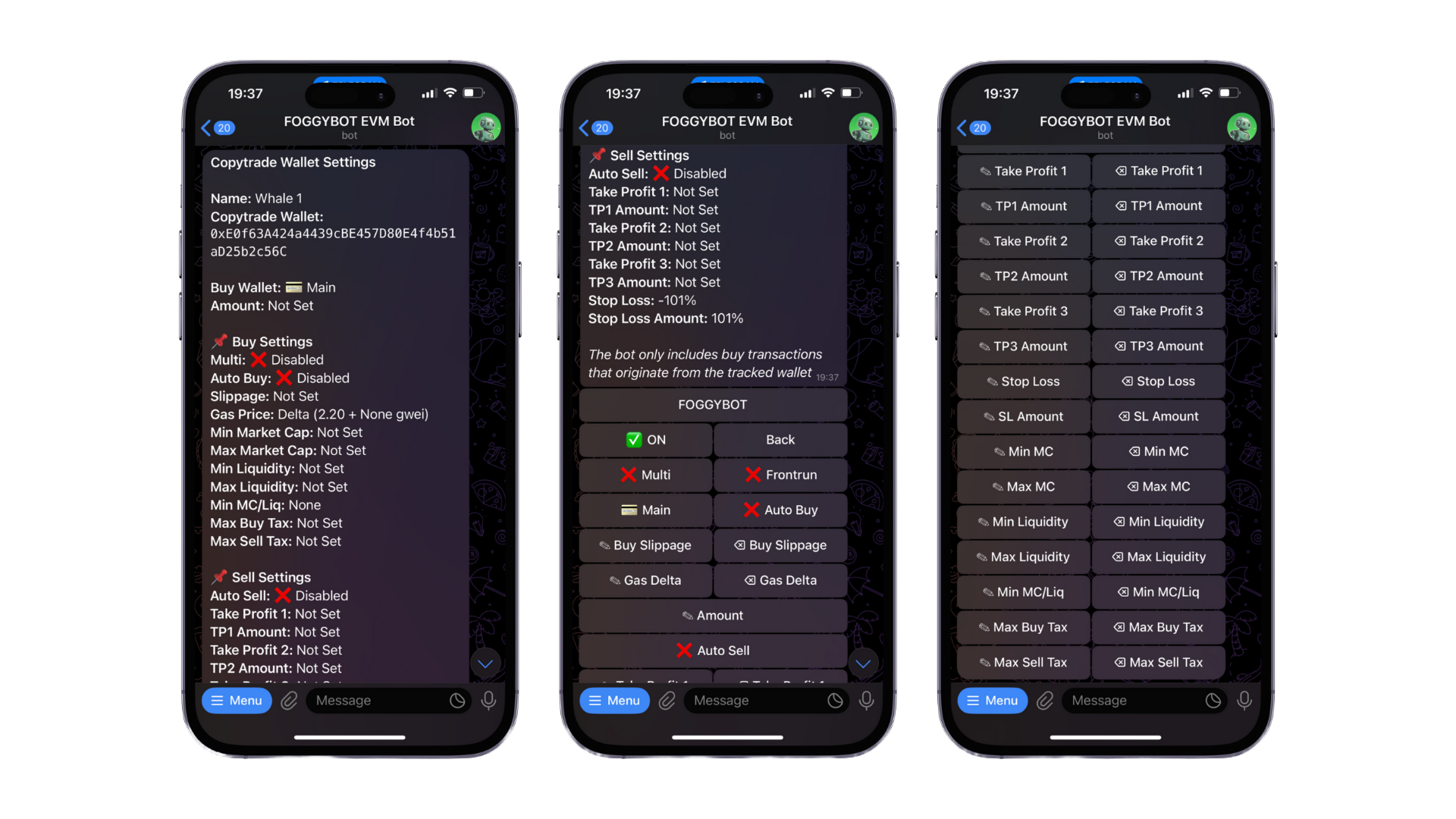 Our bot allows you to immediately copy the buys of up to 10 wallets each on ETH & BNB.