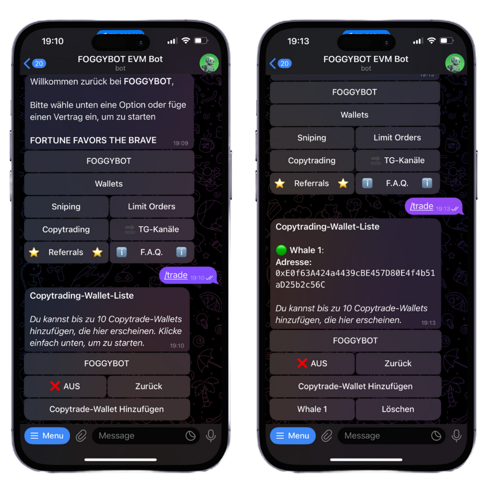Our bot allows you to immediately copy the buys of up to 10 wallets each on ETH & BNB.