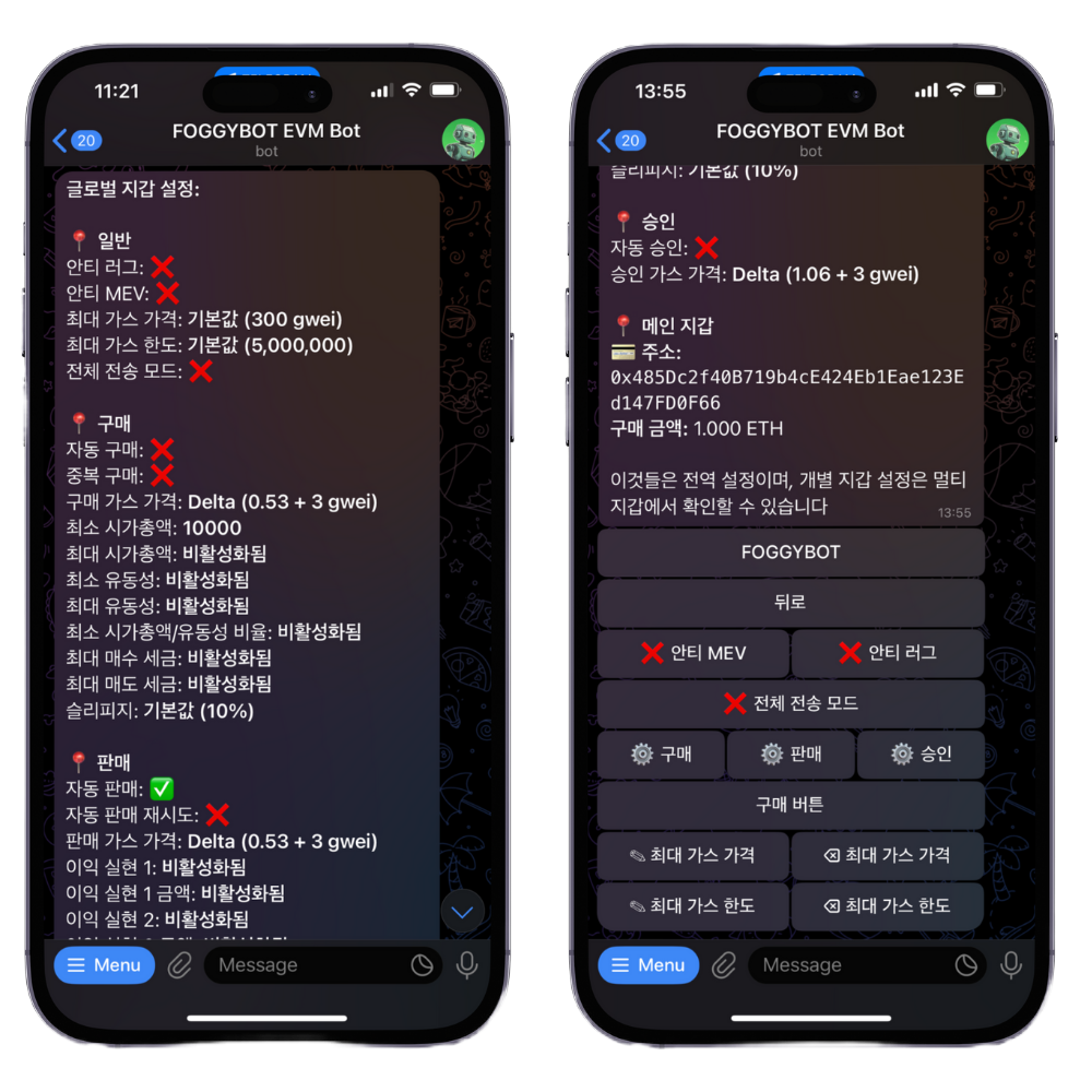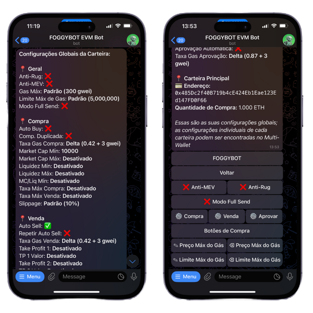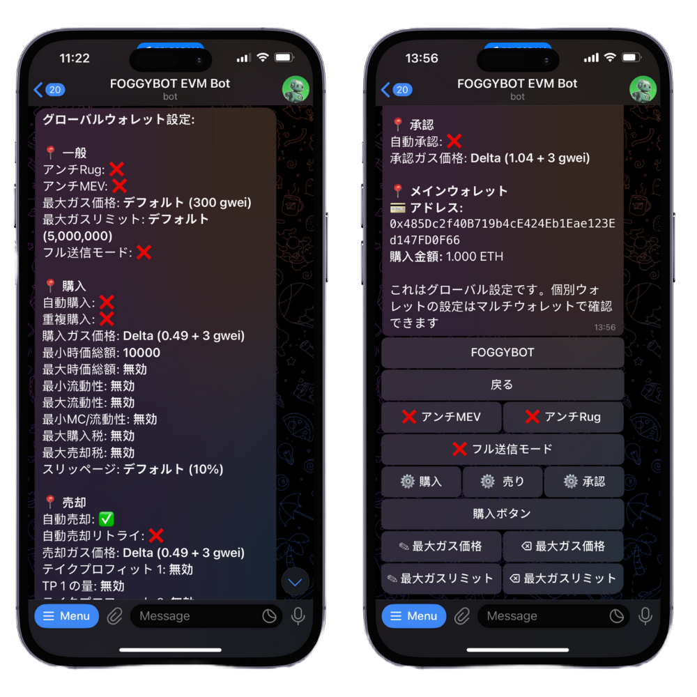 This security feature works to preempt liquidity rugs, blacklisting, tax hikes, and other exploitative actions. When a malicious transaction is detected in the mempool, the bot attempts to exit your position before the attack is executed. If enabled ✅, it operates automatically on every trade. While it significantly enhances protection, it is not foolproof, so please trade responsibly.