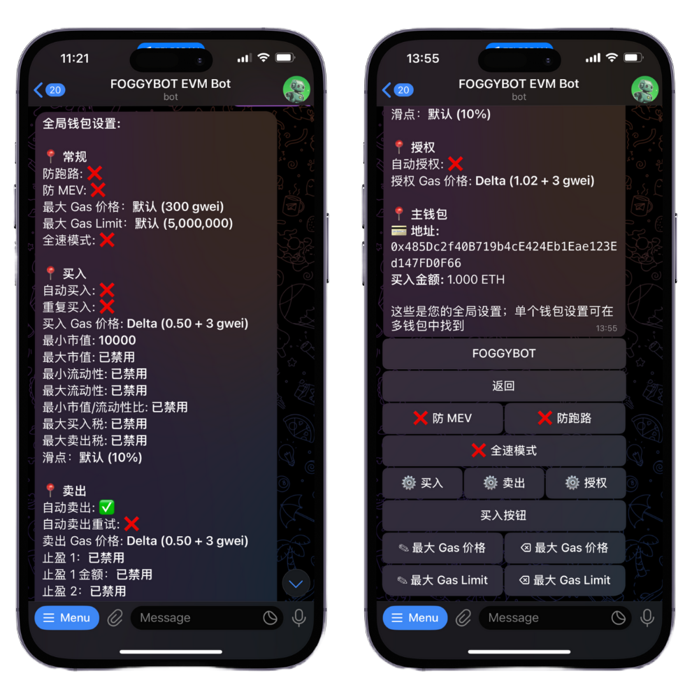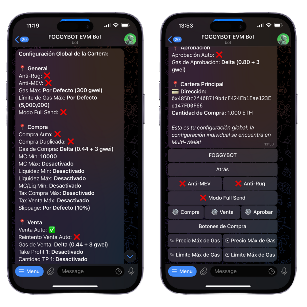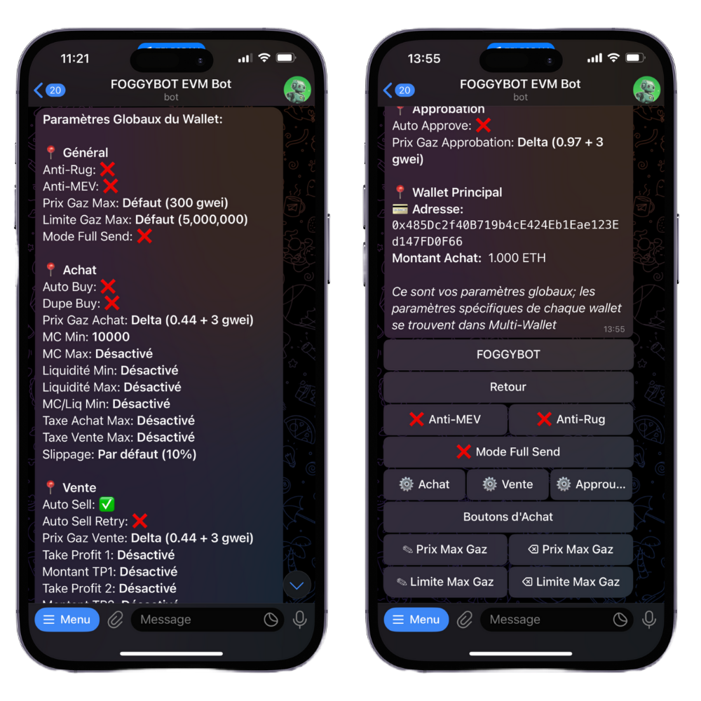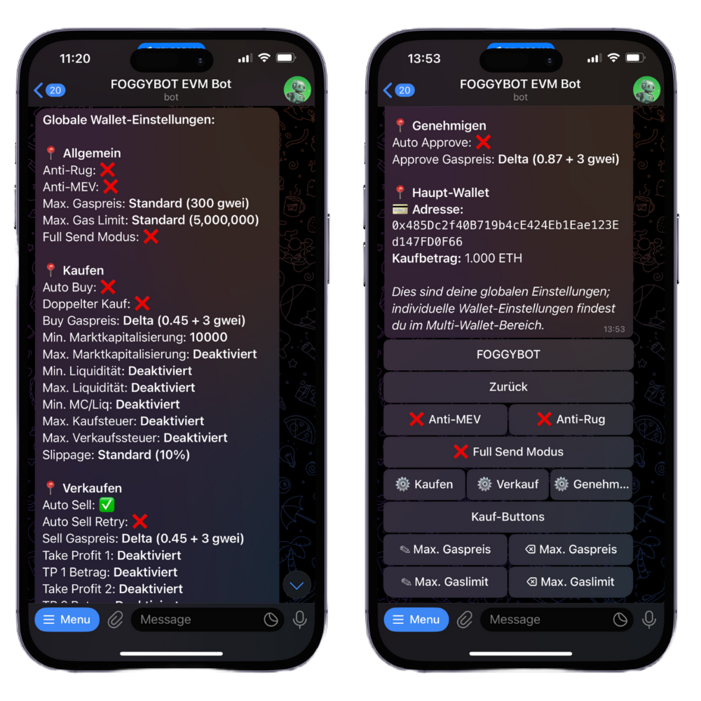 This security feature works to preempt liquidity rugs, blacklisting, tax hikes, and other exploitative actions. When a malicious transaction is detected in the mempool, the bot attempts to exit your position before the attack is executed. If enabled ✅, it operates automatically on every trade. While it significantly enhances protection, it is not foolproof, so please trade responsibly.