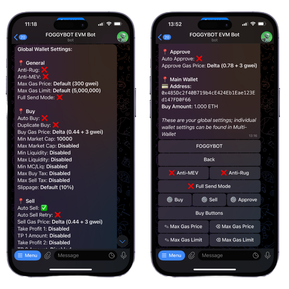By default, the sniper prevents auto-buys on tokens flagged for honeypots, blacklist risks, or poor liquidity. However, some users prefer to trade without these safeguards—enter Degen Mode. When enabled ✅, the bot will still alert you to these risks but will no longer block auto-buys. Use this feature only if you fully understand the risks and are prepared to manage them on your own.