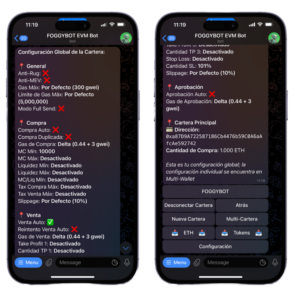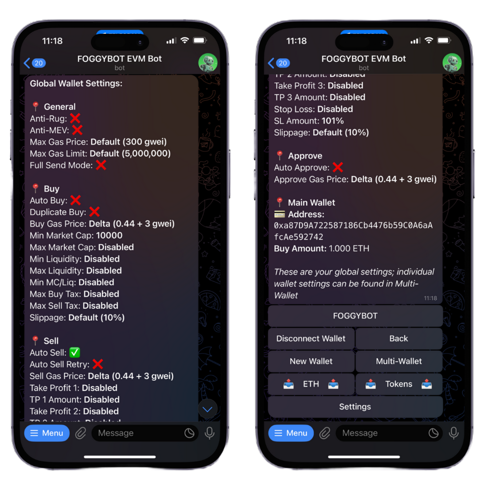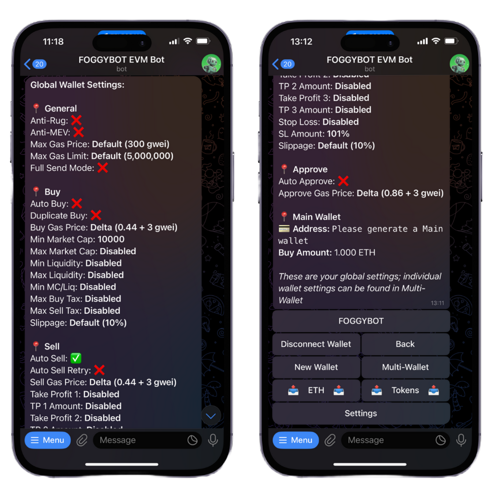Once you have generated a Main wallet, you can use all of the features in on the bot, generate/add extra wallet or fund your wallet by sending crypto to it. Same goes for the SOL bot.