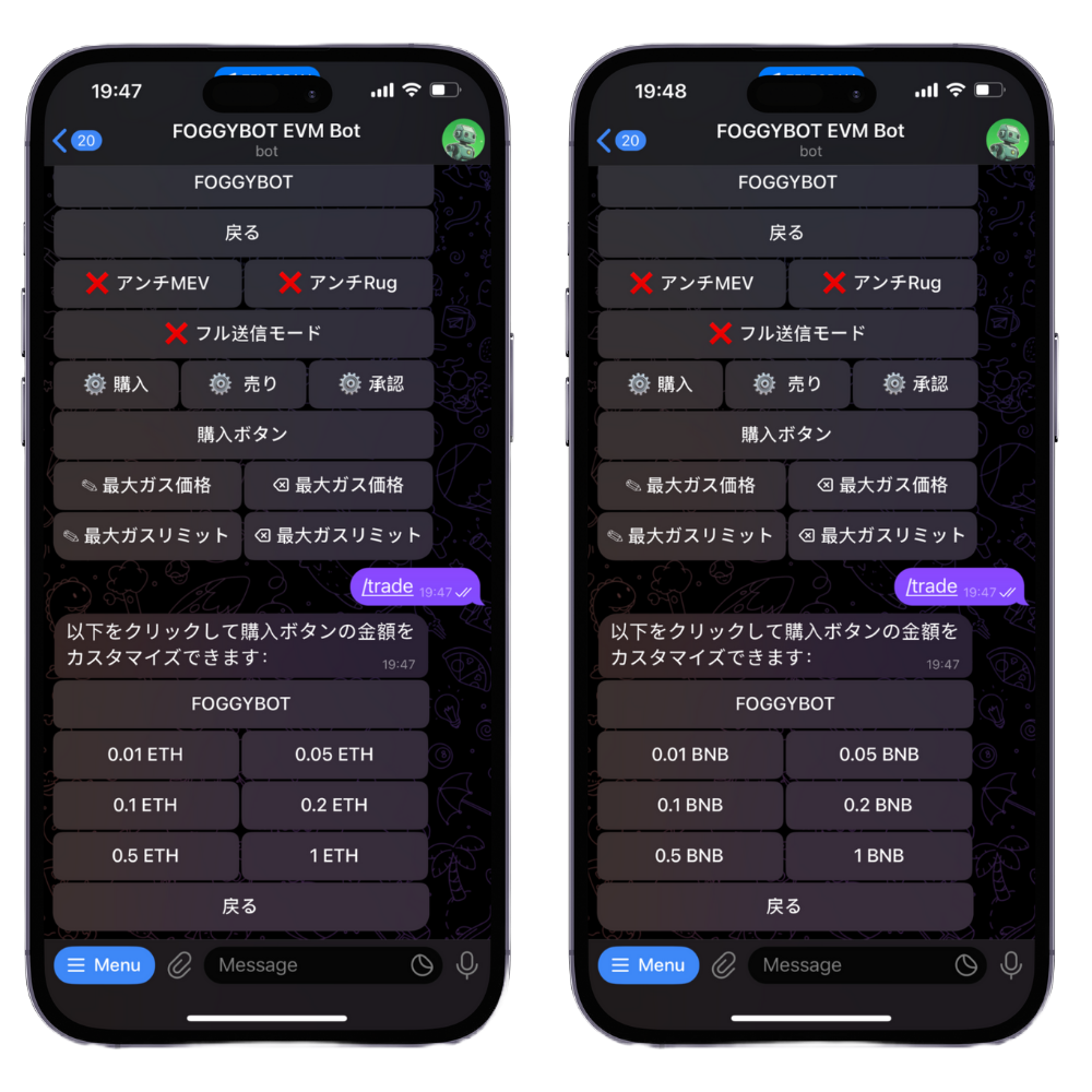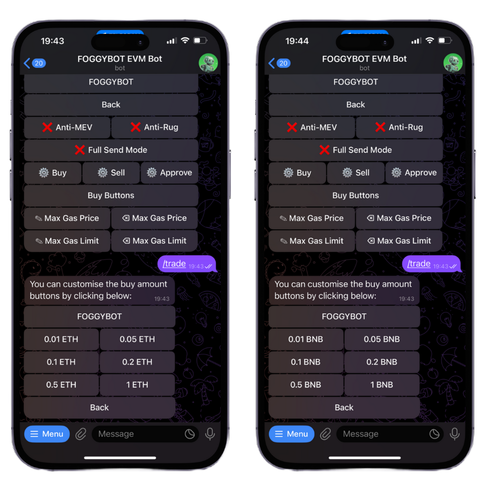 The buy buttons on the keyboard when you paste a contract are customizable for both ETH & BNB as well as SOL.