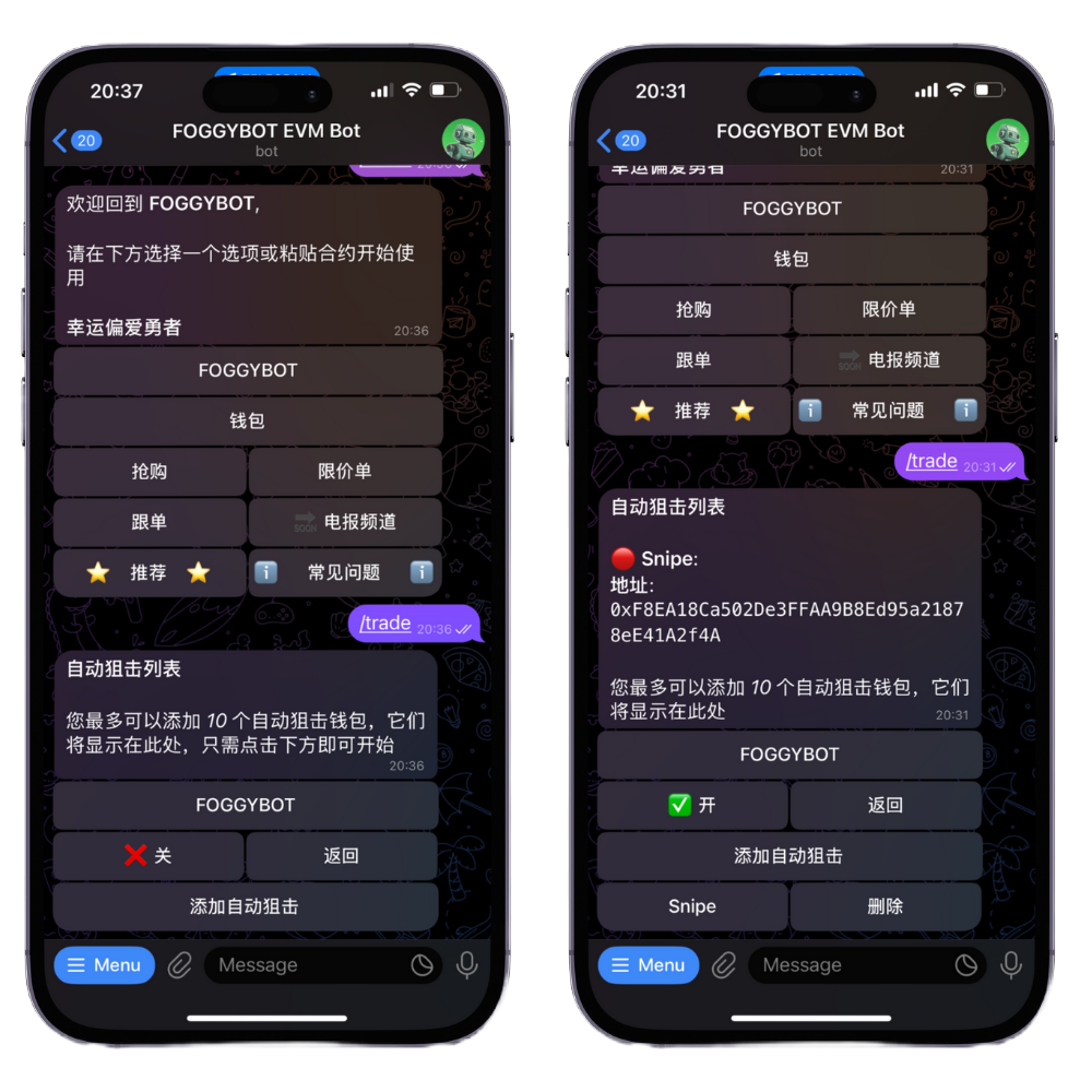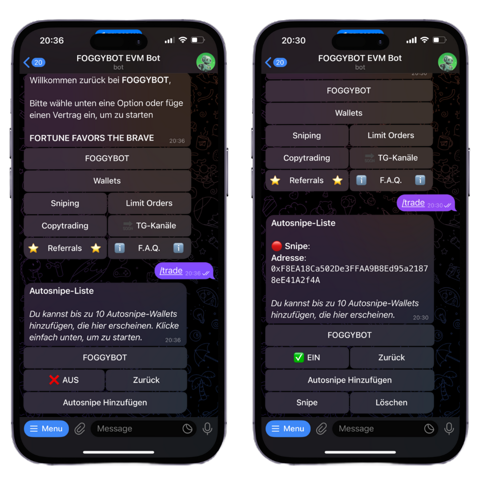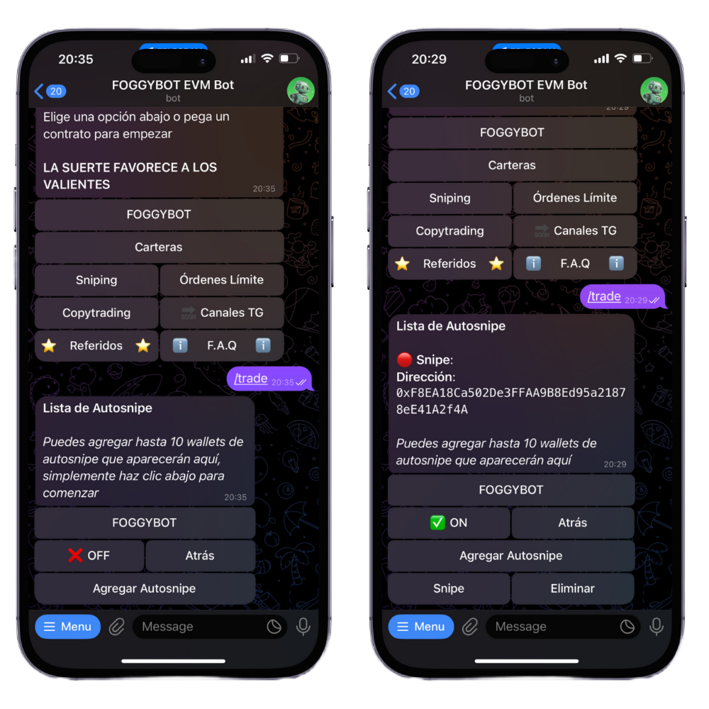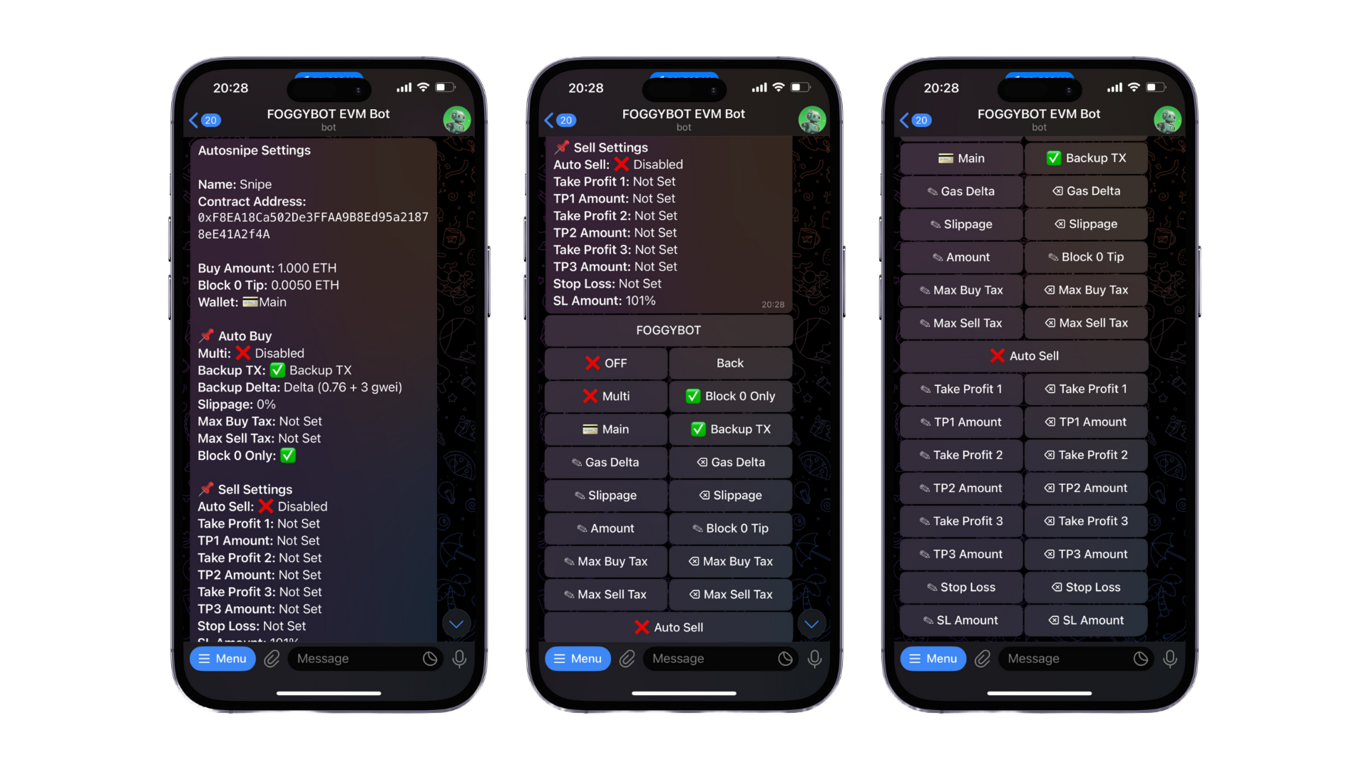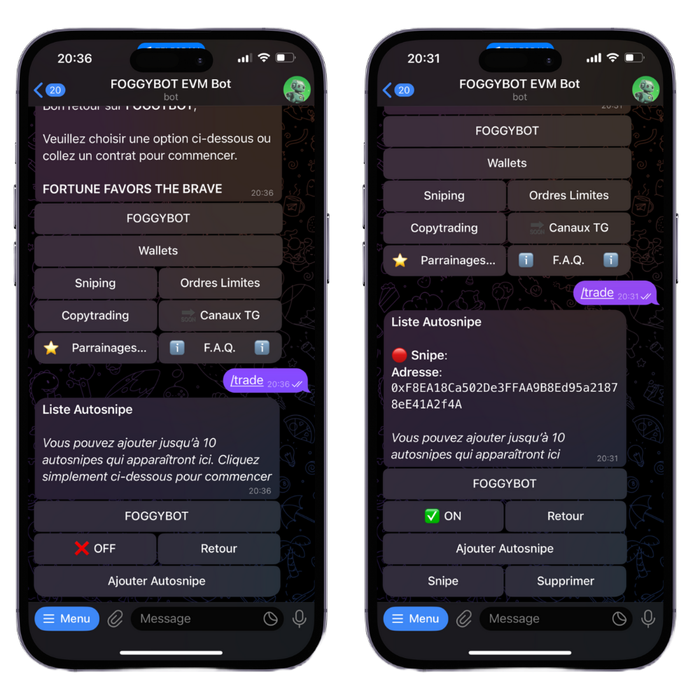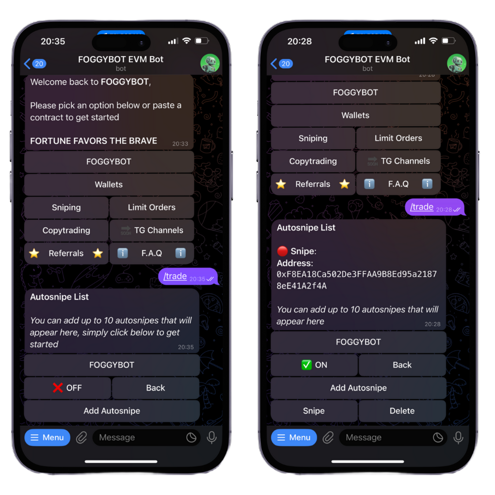 Looking to snipe a token at launch? The bot’s Auto Snipe feature automates the entire process. If you don’t already have the contract address, you can forward or copy/paste it to initiate an auto-buy.
